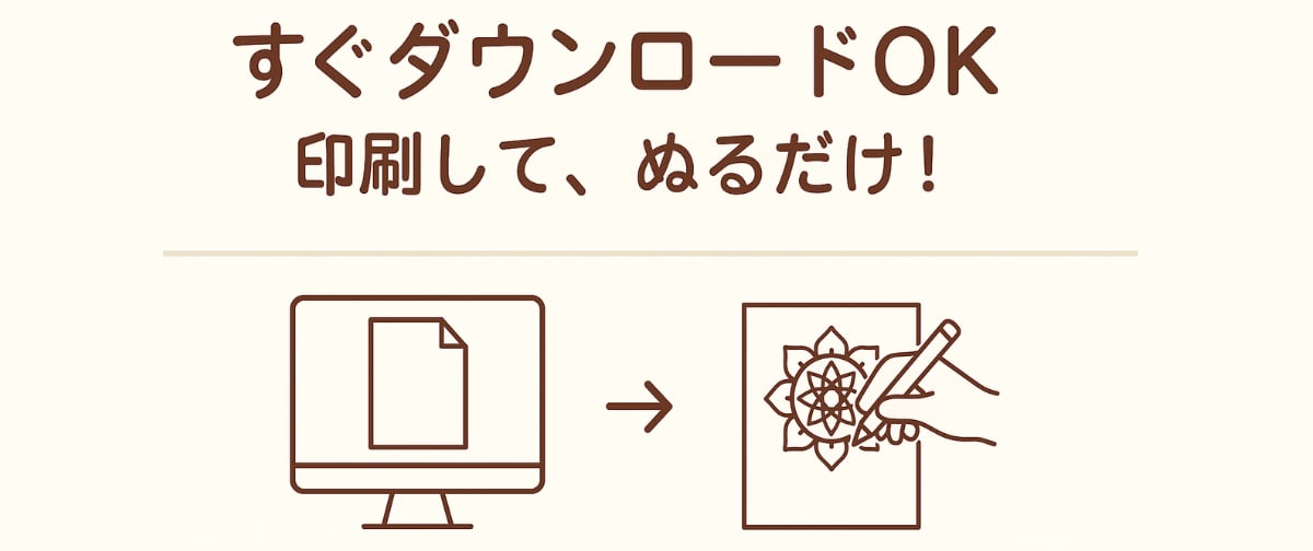 第1チャクラ(ムーラダーラ) テーマ:安心・グラウンディング/色:赤 「落ち着かない」「不安でそわそわする」そんな時に。 第1チャクラは“心の土台”。 ぬりえを通じて、安心感と安定した心を育てます。 子ども用:やさしい自然や根っこモチーフ 大人用:幾何学的で落ち着くマンダラ模様 親子で“安心の色”を塗って、心を整える時間に。 <ダウンロード版ぬりえのメリット> ・何度でも印刷して楽しめる ダウンロードデータのぬりえは、好きなページを何度でもプリントアウトできます。失敗しても気軽に再挑戦でき、同じデザインを違う色で塗り分けることも可能です。 ・好みの用紙を選べる 普通紙はもちろん、厚紙や特殊な質感の紙を使って塗ることが可能です。特別な仕上がりを目指して、紙の質を変えて楽しむことができます。 <ダウンロード後のご注意> ・本商品は デジタルデータ(PDF形式) です。ご購入後、ダウンロードしてご利用ください。 ・スマートフォンからのダウンロードは、機種や設定によりPDFが正しく表示されない場合があります。その場合は、パソコンやタブレットなど別の端末をご利用ください。 ・印刷の際は、A4サイズ・白黒印刷を推奨しております。 ・データの性質上、ご購入後の返品・交換はお受けできませんので、予めご了承ください。 ・本データは 個人利用のみでお願いします。商用利用・再配布・転売は禁止しております。